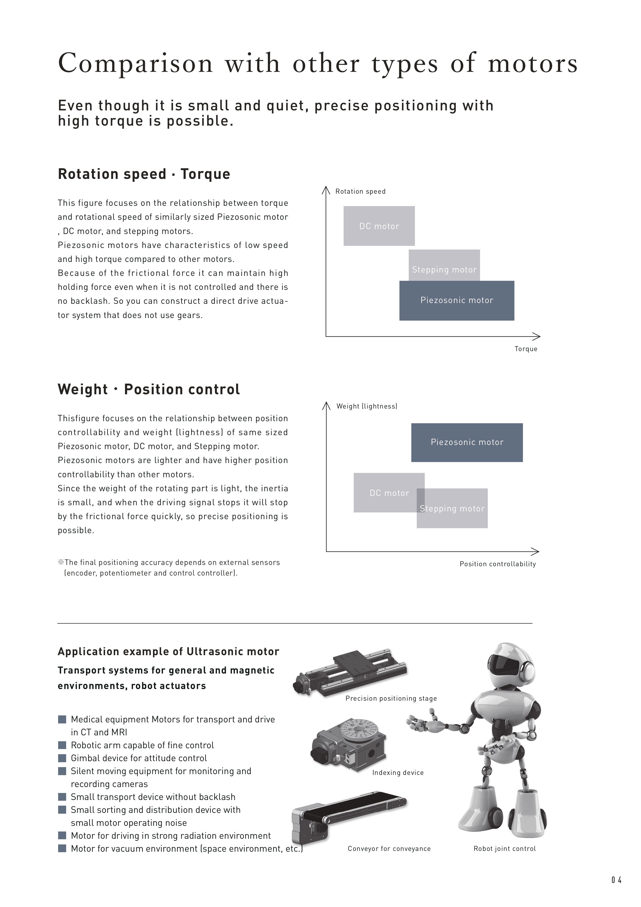 其高扭矩型音波馬達「Piezo Sonic Motor」的特點,